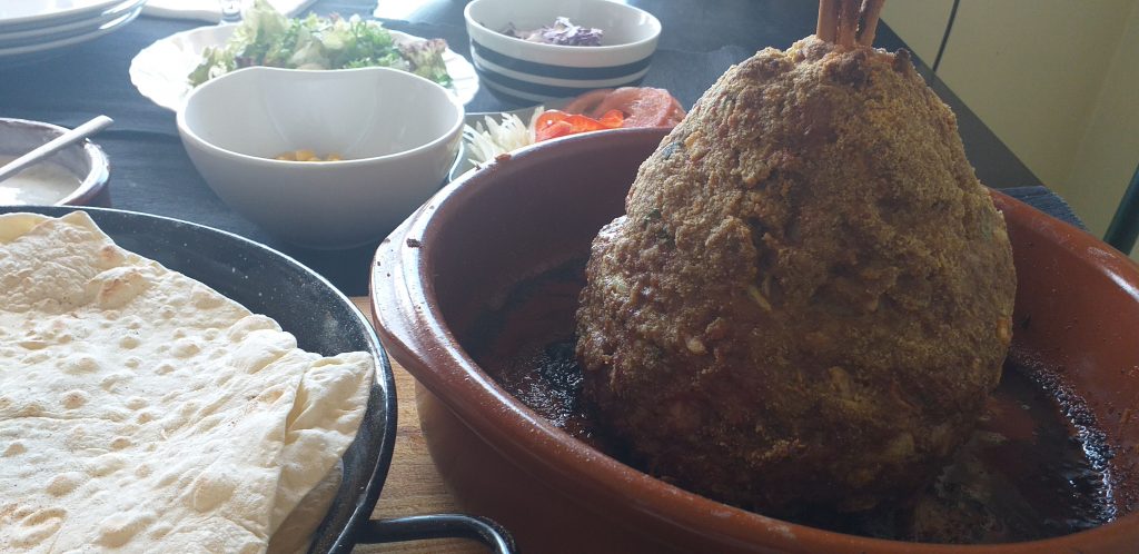 Para armar la carne del kebab : 1 Ajo 1 Cebolla Un poco de Perejil 1k de Carne de Ternera 1/2 Vaso de Leche 1 Huevo 2 Cucharaditas de Pimienta Negra 2 Cucharaditas de Pimentón Picante 2 Cucharaditas de Ras El Hanout 1/2 Taza de Pan Rallado Sal