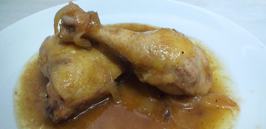 Mientras tenemos la cebolla que se va pochando cortaremos 4 ajos bien finitos y los añadimos al cazo.