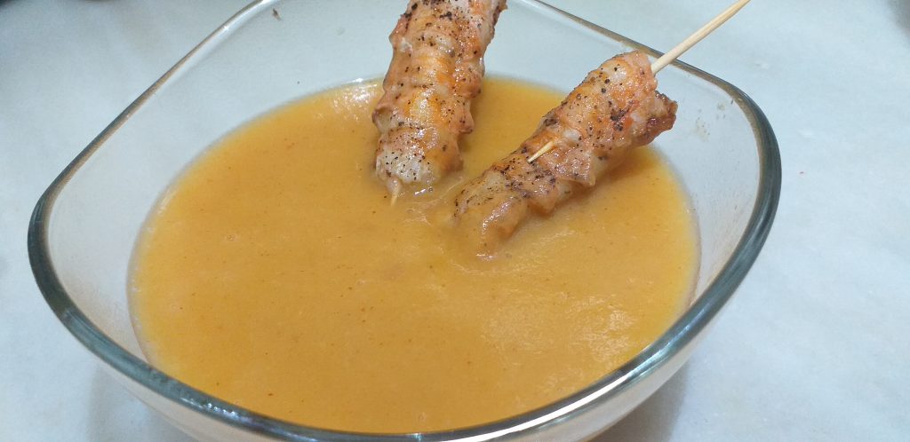 Ahora en otro recipiente vamos a hacer una salsa; en este caso pondremos dos cucharadas de salsa de soja, le añadimos el zumo de un limón pequeño, para hacer picante esta salsa le vamos a añadir un pimiento de cayena y también añadiremos una cucharada repleta de azúcar, trituramos- fusionamos estos ingredientes y también reservamos.