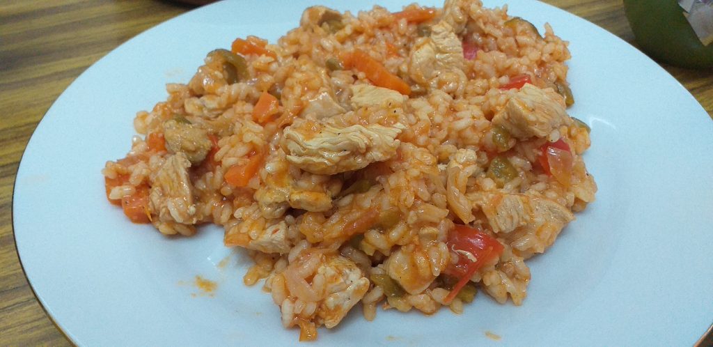 Y cuando pasen los 15 minutos de cocción, ya tenemos el arroz con pollo preparado.